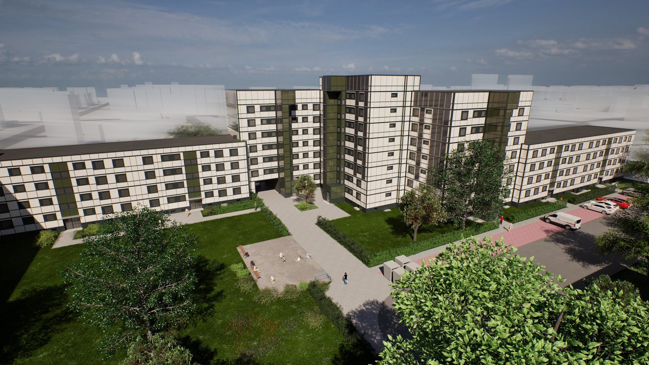 - Sanierung der Gebäudehülle mit vorgefertigten Fassadenelementen in Holzrahmenbauweise