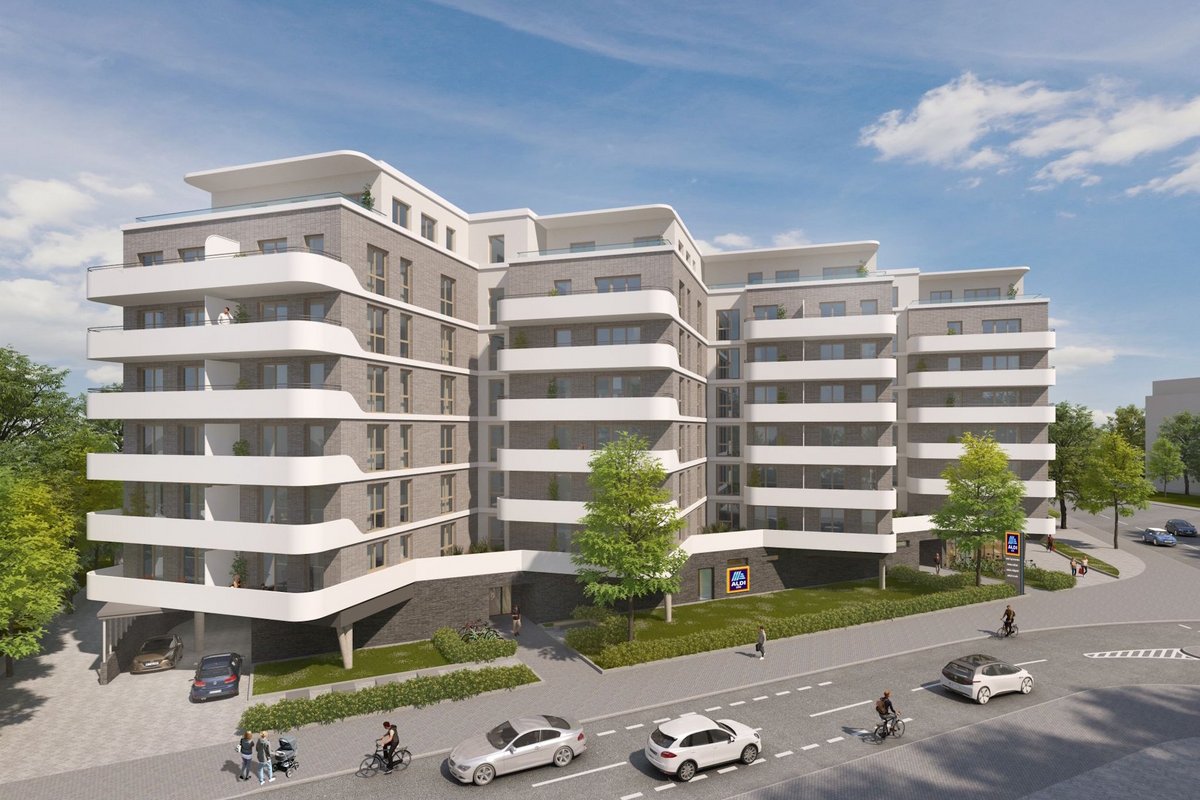 In Frankfurt-Sachsenhausen setzt der Discounter ALDI SÜD ein zukunftsweisendes Mixed-Use-Konzept um: Ein ehemaliges Bürogebäude der Deutschen Bahn wird seriell saniert, um ein Staffelgeschoss erweitert und in ein Wohnensemble mit 83 Wohnungen unterschiedlichster Größen umgewandelt. Im Erdgeschoss sorgt eine moderne ALDI-Filiale für die Nahversorgung der Bewohnenden und Anwohnenden.